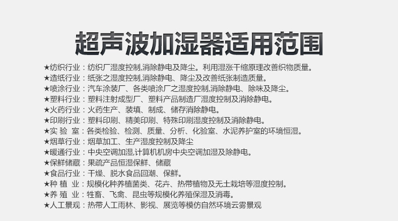 1、微電腦自動控制。本機器為自動控制加濕,客戶只要設置到需要的濕度,機器就會自動工作運行,省心、省力。