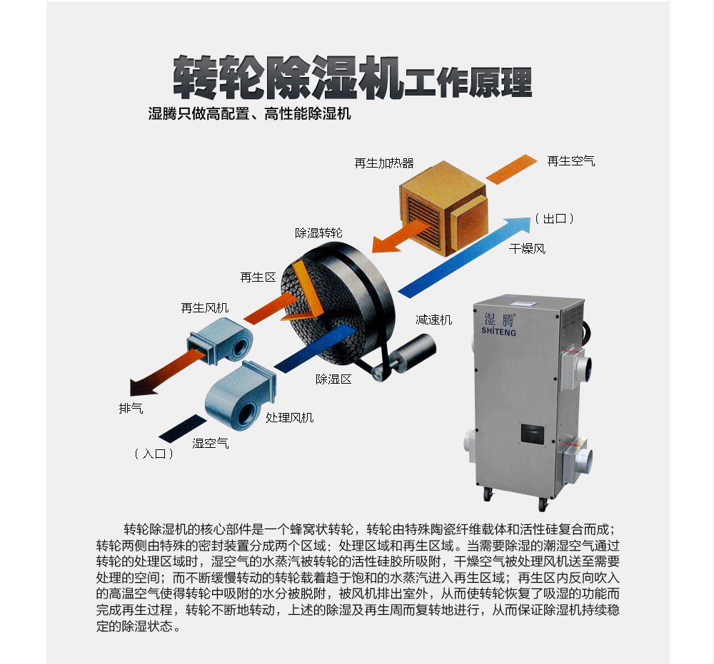 濕騰轉輪除濕機工作原理概述:
